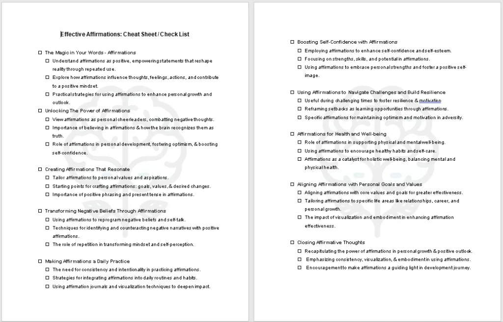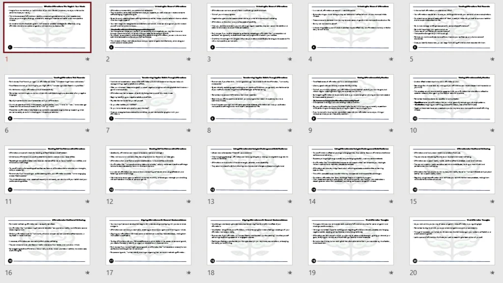 - Using affirmations as personal development aids.