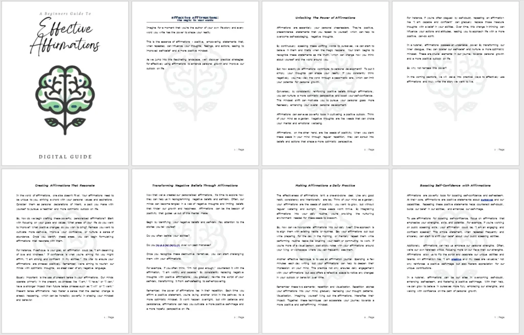 It makes a big effort towards teaching the end user all about affirmations and what they can do, and then outlines how to form effective habits in their life involving them. And how they can start to see benefits across the board in various facets of life.