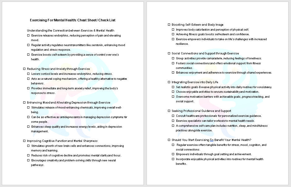 There's discussion around reduction in stress and anxiety, how exercise can adjust your mood and enhance cognitive function, and multiple ways it can boost your self-esteem and image.