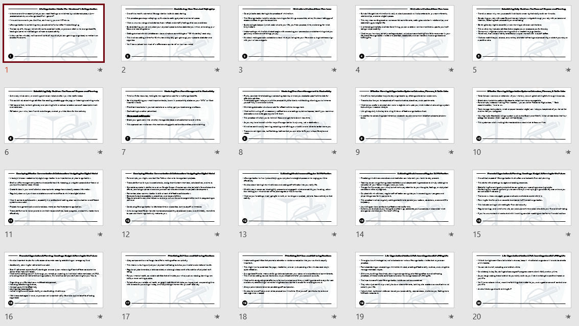This limited-availability PLR product is focused around various different habits that really anybody can implement into their life to bring organization to the chaos. It explores the concept, signs of burnout, effective work/life balance techniques, and all kinds of details surrounding the main topic.